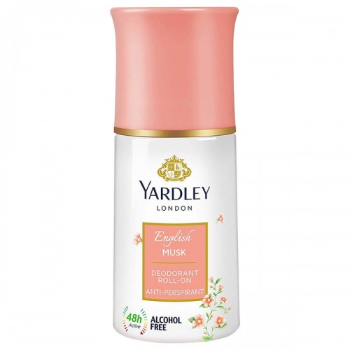 The Yardley of London Ladies English Musk Roll-On Deodorant, 50ml, offers 24-hour protection against body odor and perspiration while enveloping you in the timeless, elegant scent of English musk. Its gentle, skin-friendly formula keeps you feeling fresh and dry throughout the day, leaving behind a subtle, sophisticated fragrance. Perfect for daily use, it provides long-lasting comfort without irritation.